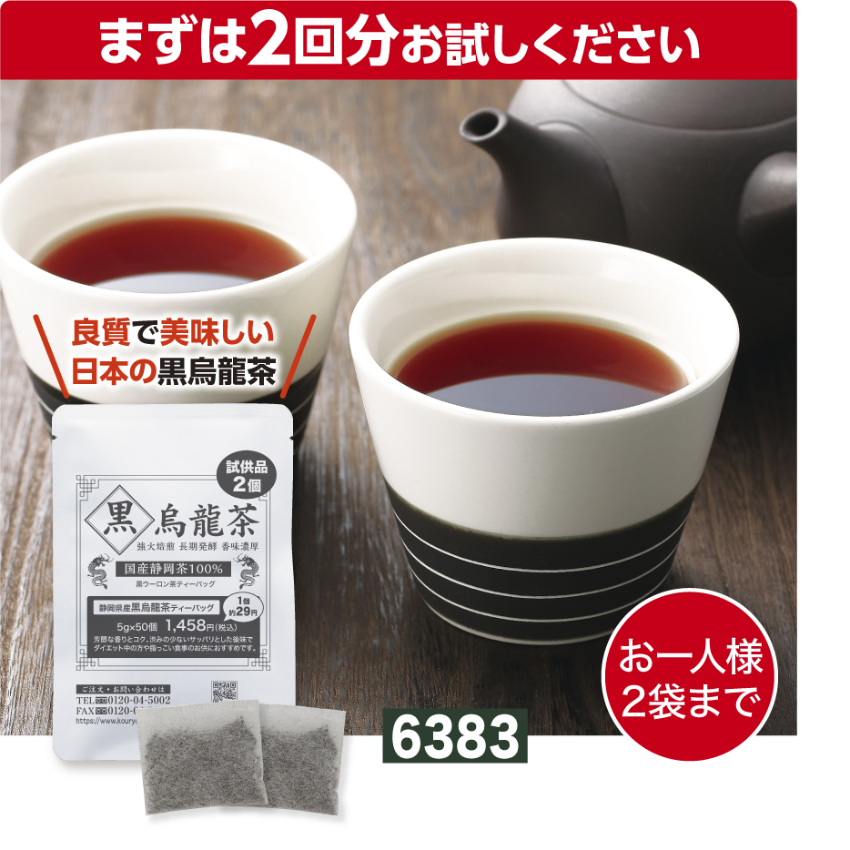 『お試しサイズ 静岡県産 黒烏龍茶ティーバッグ 5g×2個』 国産100% 黒ウーロン茶 ダイエット